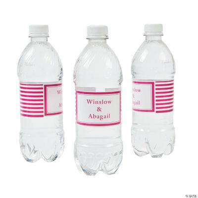 Wedding Water Bottle Labels Editable Water Bottle Template Personalized ... Item # 26343 Personalize with couple's titles, last name and date Sold in sets of 24 Labels are self-adhesive and waterproof Labels measure 8 1/2" x 2" Fits most standard 12 oz. and 16.9 oz. water bottles.